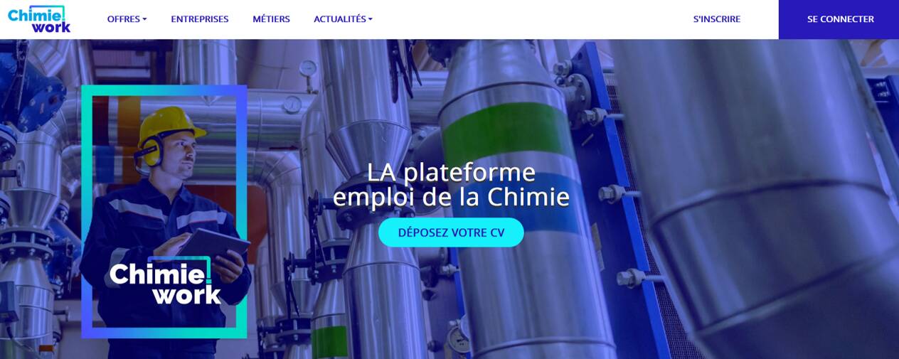 Première plateforme pour l’emploi 100% dédiée à la Chimie, Chimie.work regroupe les offres d’emploi du secteur. Le site permet aux entreprises de mettre en valeur leurs opportunités de carrière auprès du plus grand nombre et offre aux candidats l’accès à la plus grande sélection en ligne d’emplois dans la Chimie.