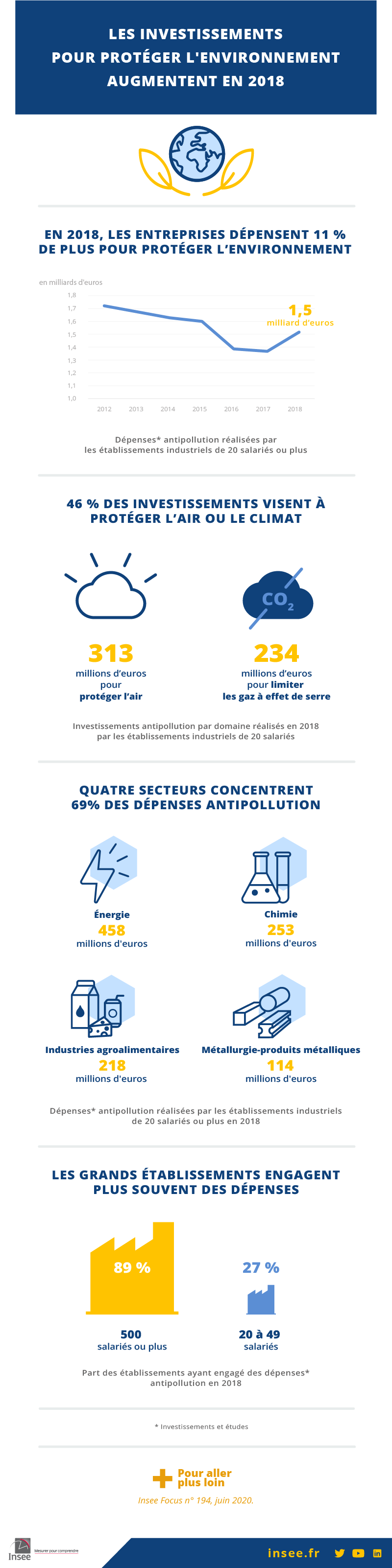 Les entreprises ont investi en 2018 11% de plus pour protéger l’environnement, soit 1,5 milliard d’euros :