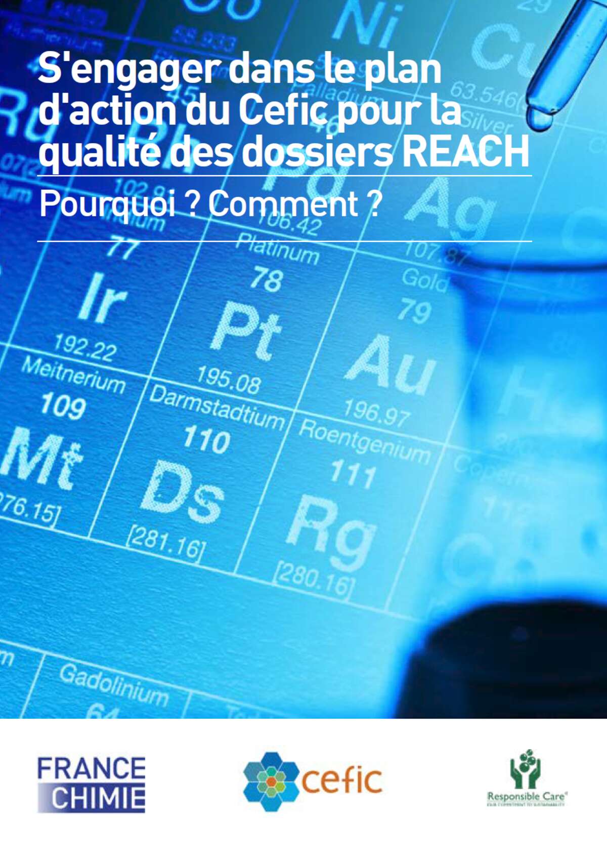 Vous fabriquez ou importez en Europe des substances chimiques à plus de 1T/an ? Vous avez enregistré un ou des dossiers REACH* ? Vous souhaitez améliorer la qualité de vos dossiers ? Retrouvez ici toutes les informations pratiques relatives à cette démarche ! 175 entreprises ont déjà signé le plan d'action du Cefic, dont 77 adhérents de France Chimie